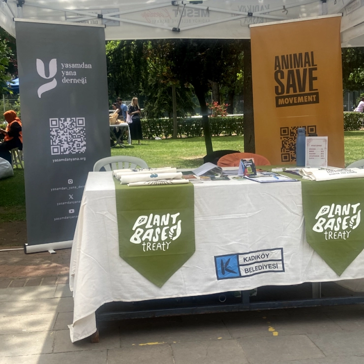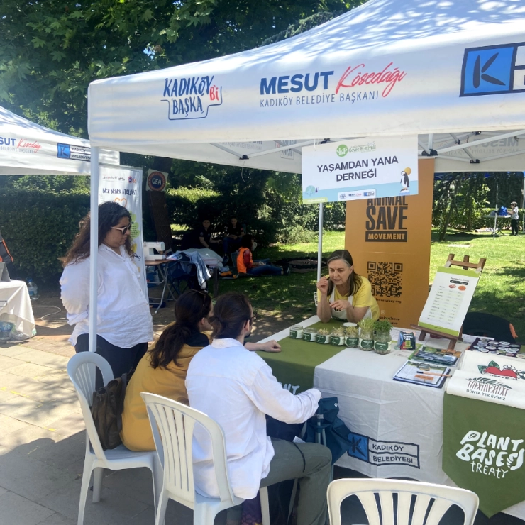 İki gün boyunca dopdolu bir programın olduğu Kadıköy Çevre Festivalinde iki gün boyunca standımızda birçok STK, yayınevi ve yerel üreticiyle tanışma fırsatımız oldu. Festivalin ilk günü mikrofiliz ve ikinci günü vegan süt ve peynir üzerine yaptığımız atölyelerde bitkisel beslenmeyi hayatımıza nasıl kolayca alabileceğimizi katılımcılarla paylaştık. Festivalin ikinci gününde ‘Hayvancılığın Gezegenimize Maliyeti’ başlıklı sunumumuzla gezegenin sınırları ve hayvancılığın bu sınırları geçmemizdeki etkisi üzerine konuştuk. Sunumun sonunda ise hem bireysel hem de sistemsel dönüşüm için veganlığa geçişin önemini belirttik.